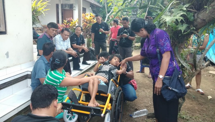 Gianyar – Dinas Sosial Provinsi Bali bersama Puspadi Bali menyerahkan bantuan kepada 3 (Tiga) penyandang Disabilitas di Kabupaten Gianyar.