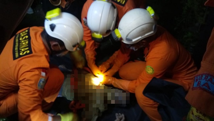 | Pukul 00.35 Wita korban asal Kecamatan Abiansemal berhasil dievakuasi Tim SAR gabungan dalam keadaan meninggal dunia/Dok. Basarnas Bali. |