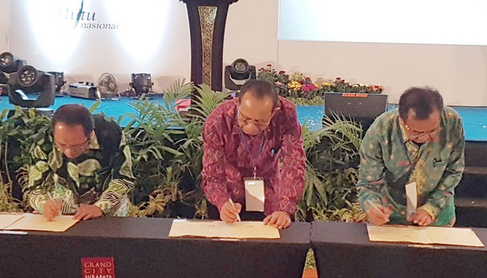 SURABAYA – Bupati Tabanan Ni Putu Eka Wiryastuti diwakili Sekda Wirna Ariwangsa tandatangani kesepaktan bersama, Memorandum of Understanding (MoU) dengan Badan Sertifikasi Nasional (BSN) di Hotel Grand City, Surabaya, Kamis (25/10/2018).