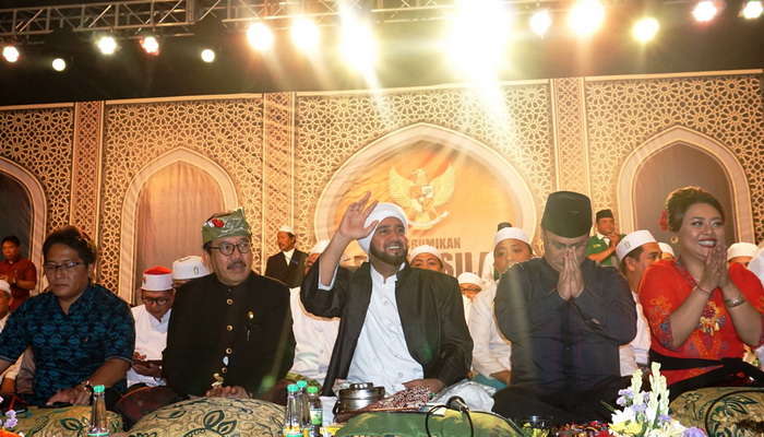 Ahmad Basarah juga mengajak yang hadir untuk bersholawat melantumkan doa-doa. “Marilah kita bersholawat, berdoa dan berzikir dipimpin oleh Habib kita Habib Syech, semoga Bangsa Indonesia senantiasa mendapatkan perlindungan, mendapatkan kekuatan, mendapatkan ketabahan, untuk menuju kepada kejayaannya,” katanya.