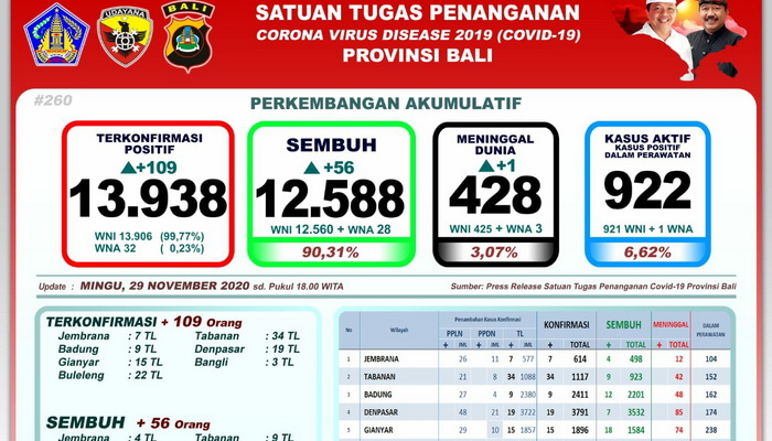 Denpasar – Provinsi Bali mencatat pertambahan kasus terkonfirmasi