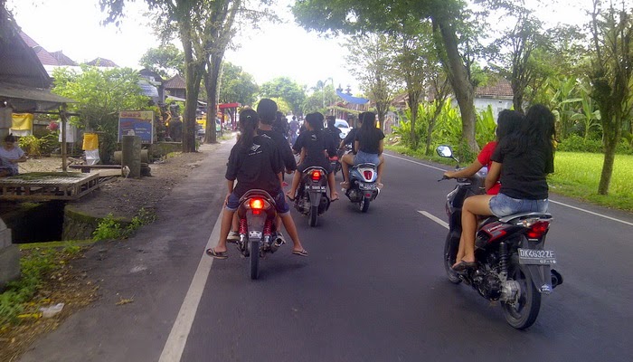 Bahkan diantara mereka, menuju tempat yang akan dituju, bergerak secara bersamaan dengan menggunakan sepeda motor.