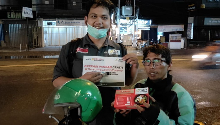 Seperti akhir dilakukan ACT Bali, Minggu 29 Maret 2020 saat hari libur, mendatangi beberapa orang driver ojek yang bergerombol berbincang sembari orderan datang. Mereka dikejutkan dengan kedatangan petugas berseragam hitam sembari membawa makanan.