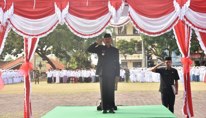 KARANGASEM – Wakil Bupati Karangasem I Wayan Artha Dipa para santri untuk memanfaatkan media sosial untuk menyebarkan pesan-pesan kedamaian dan kebaikan. Hal itu disampaikan Artha saat memimpin apel peringatan Hari Santri Nasional (HSN) di Lapangan Tanah Aron, Senin (22/10/2018).