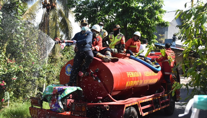 | Penyemprotan disinfektan sebagai upaya Pemerintah Kabupaten Karangasem, memutus penyebaran Corona Covid-19/ist |