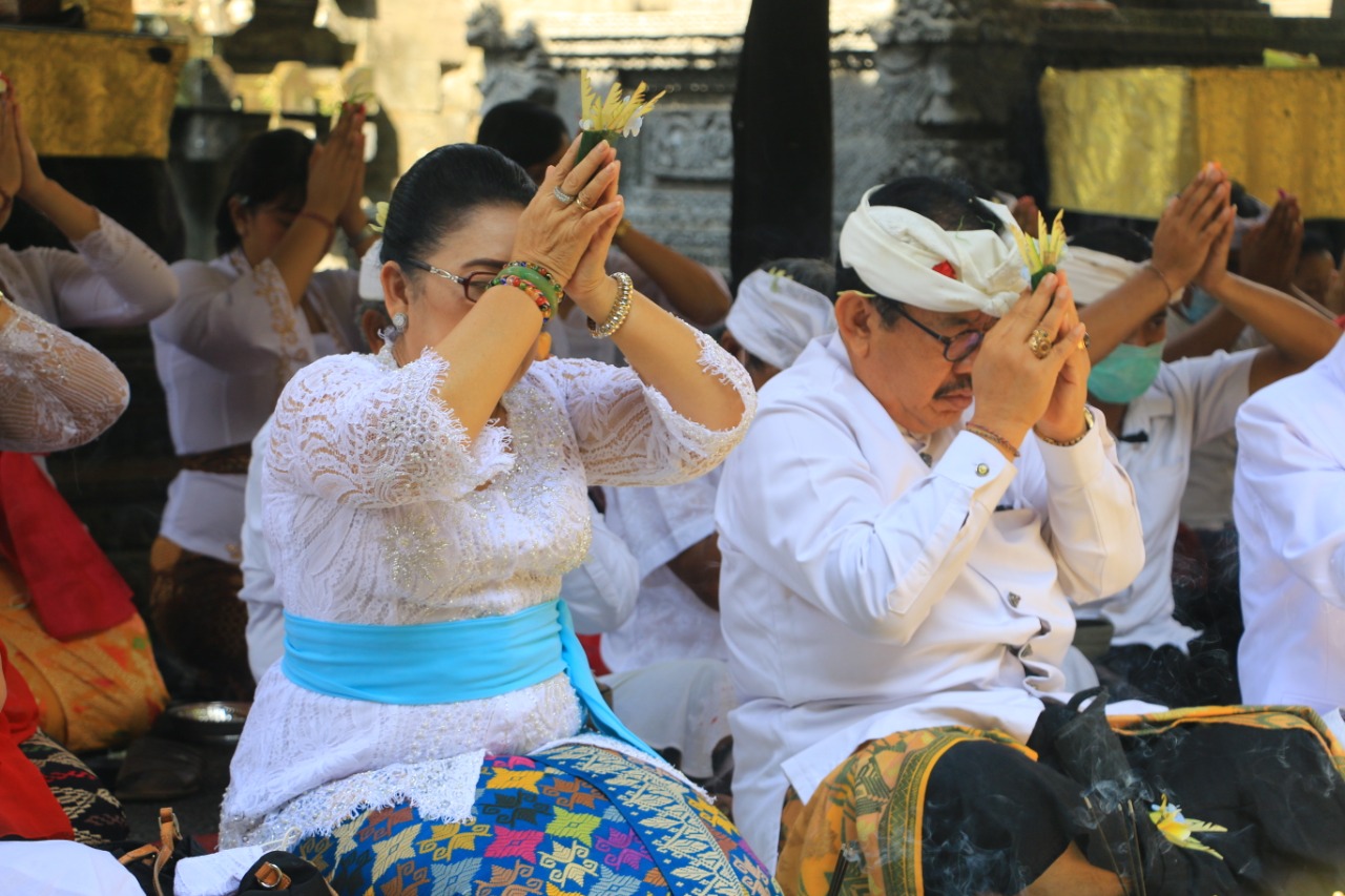melaksanakan persembahyangan bersama. Tampak terlihat hadir mantan Gubernur