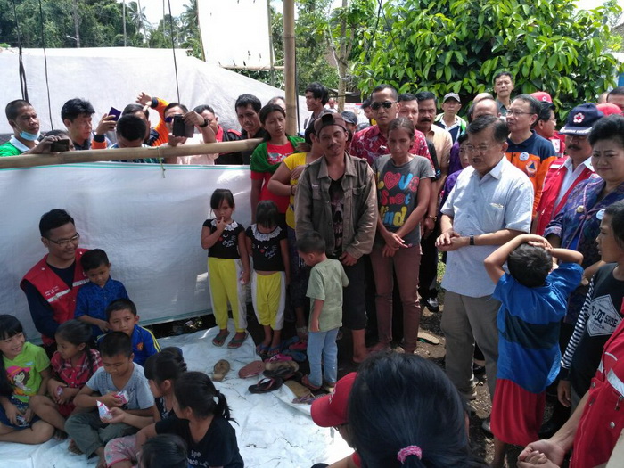 Kalla menyampaikan rasa simpati terhadap mereka yang berada di pos-pos penampungan. Pesan yang terus ditekankan kepada warga untuk tetap sabar dan bersemangat untuk melakukan aktivitas.