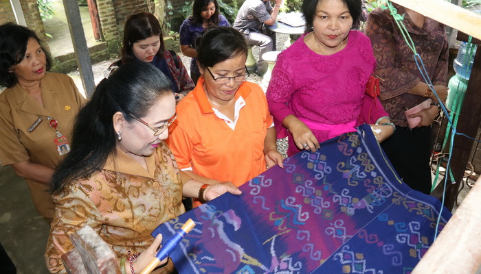 Seusai meninjau IKM Dupa Mangku, rombongan Dekranasda bergerak menuju usaha tenun Sekar Ngoneng di Desa Mendoyo, Dauh Tukad yang memproduksi tenun khas Jembrana serta kain endek.