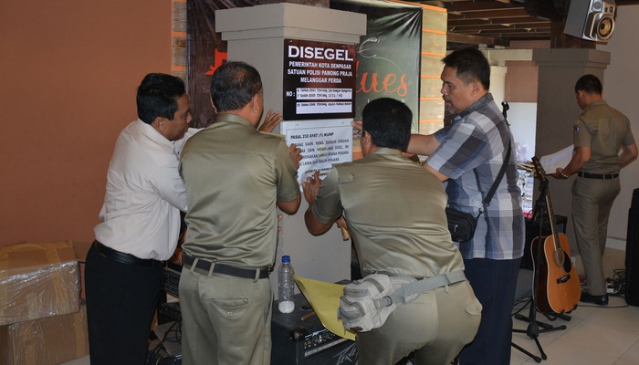 Kabarnusa.com – Satuan Polisi Pamong Praja (Satpol PP) Kota Denpasar menyegel warung Anglo Blues Night, di Jalan. Tukad Barito Timur Nomor 9 A, Kelurahan Renon, Denpasar Selatan, Rabu (9/9/2015).
