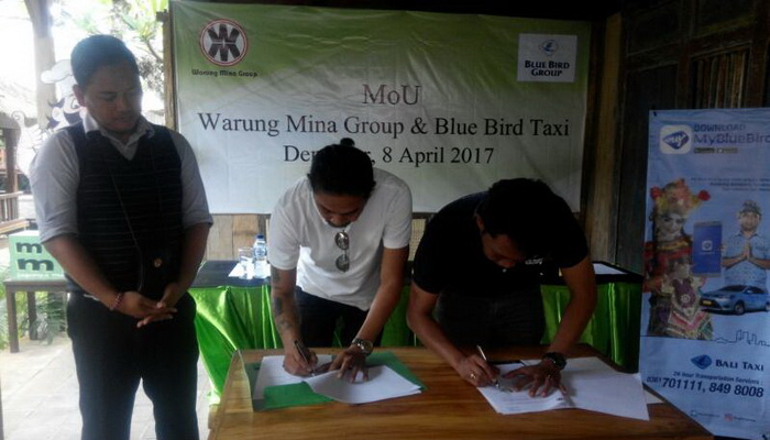 Sadar dengan tatangan global, bahwa setiap usaha harus selalu terus melakukan inovasi, bertransformasi, maka Setiawan selaku General Manager (GM) sekaligus owner Warung Mina melakukan jalinan kerjasama, sinergitas dengan Taxi Blubird dan pusat oleh-oleh Arjuna Gagapan Bali di Warung Mina Peguyangan Denpasar, Sabtu (8/4/17).